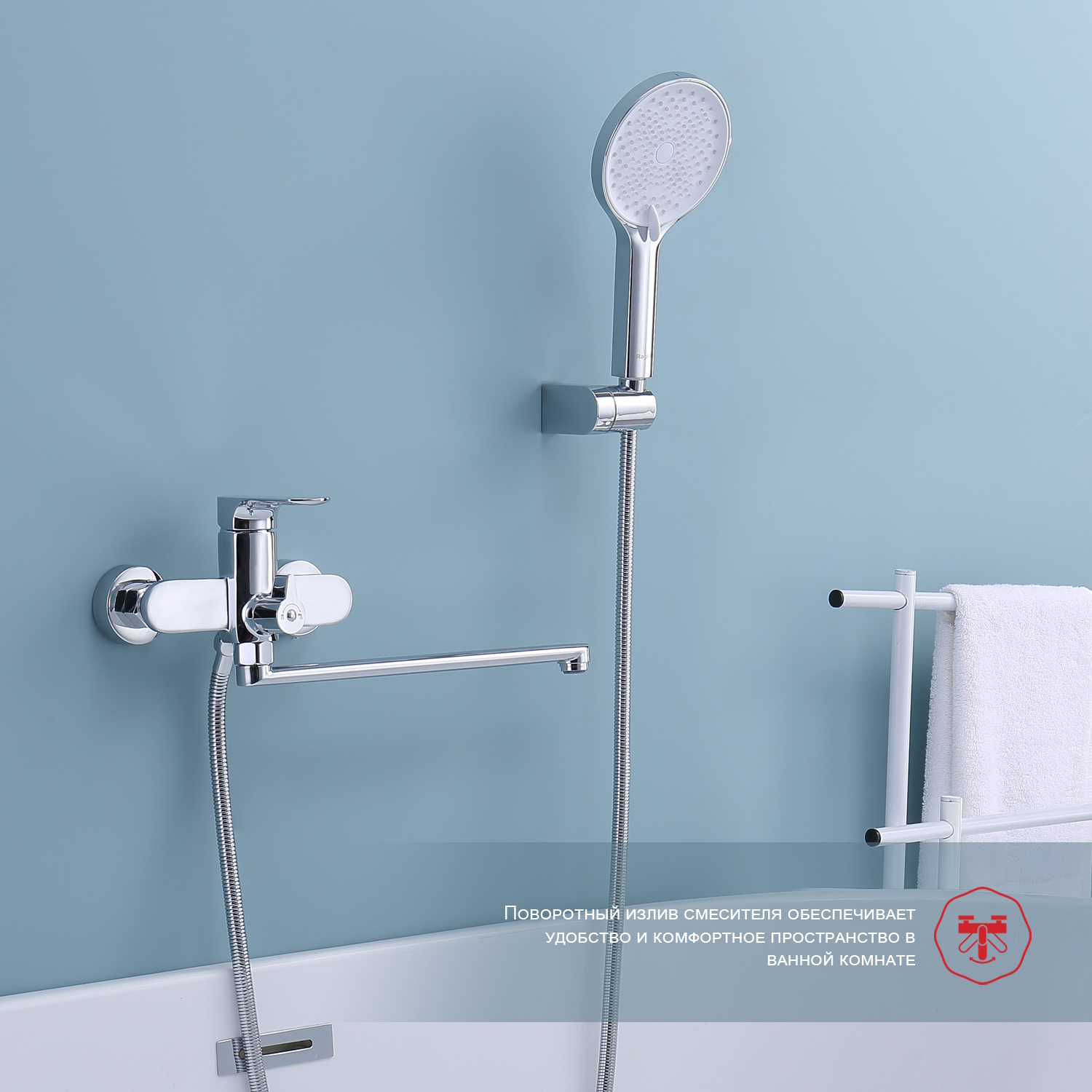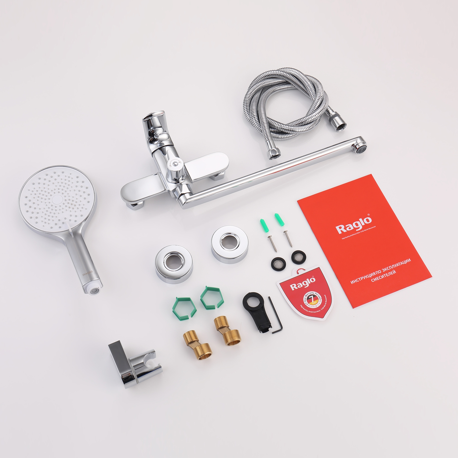 Смеситель для ванны Raglo R03.22 универсальный. Цвет: хром. Материал: латунь. Управление: однорычажное. Механизм: керамический картридж. Излив: поворотный. Аэратор.