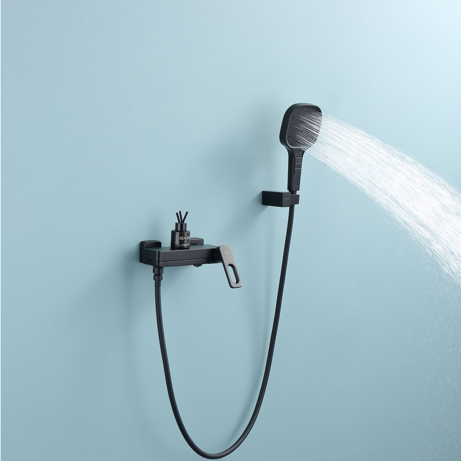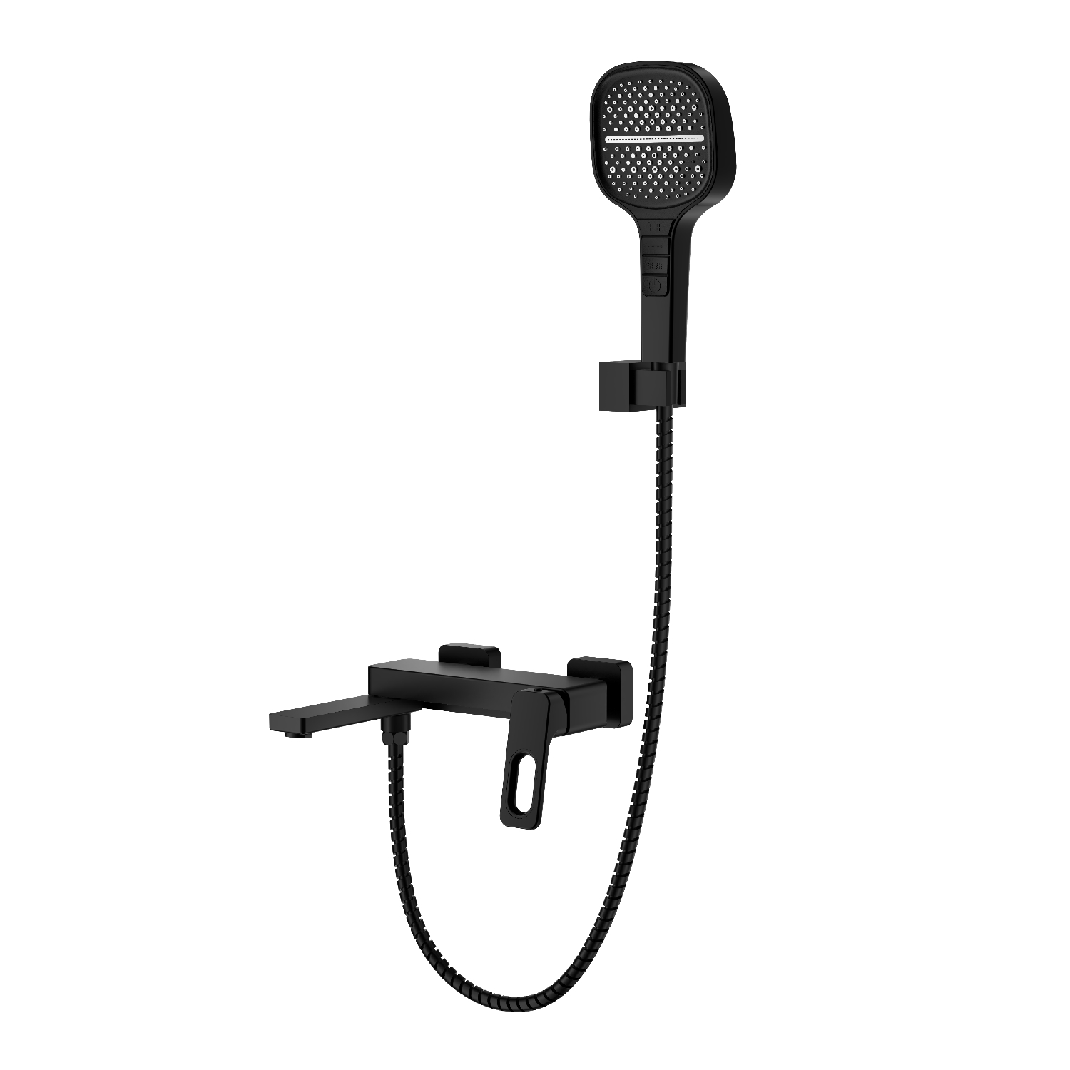 Смеситель для ванны Raglo R51.30.06 с душевым гарнитуром. Цвет: ччерный. Материал: латунь. Управление: однорычажное. Механизм: керамический картридж. Излив: поворотный. Аэратор. Количество режимов струи ручного душа: 4. Переключение режимов ручного душа: кнопочное. Стандарт подводки: G 1/2. Отверстия для монтажа: 2. Монтаж: на стену.