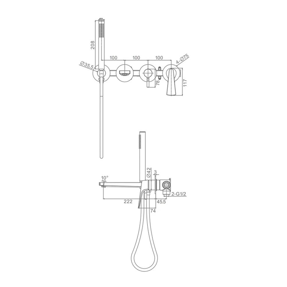 • Тип дивертора: картриджный переключатель (угол поворота 90°)