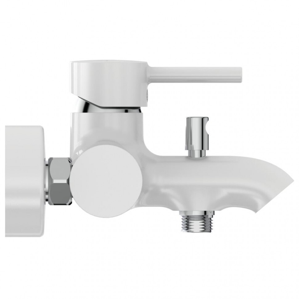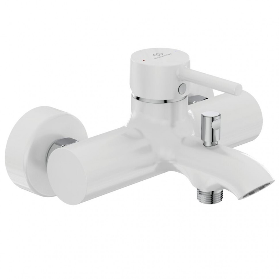 CERALINE Настенный смеситель для ванны/душа, картридж 35 мм с функцией HWTC (ограничение максимальной температуры горячей воды), с функцией CLICK (ограничение потока воды), аэратор Cashe, монтаж на стандартных эксцентриках (в комплекте: эксцентрики, металлические отражатели, уплотнительные прокладки), металлическая рукоятка с индикаторами горячей / холодной воды, автоматическое переключение ванна/душ, обратный клапан