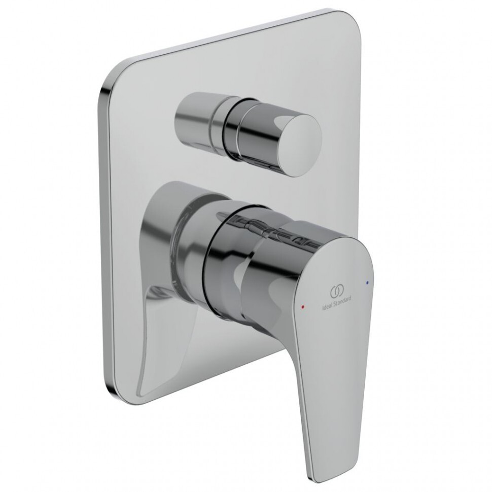 CERAFINE D Встраиваемый смеситель для ванны/душа, комплект №2 (функциональный комплект и накладка для настенного монтажа), картридж 47 мм с функцией CLICK (ограничение потока воды), металлическая рукоятка с индикаторами горячей / холодной воды, хромированная пластиковая накладка, автоматическое переключение, для монтажа с комплектом EASY-BOX A1000NU (заказывается дополнительно)