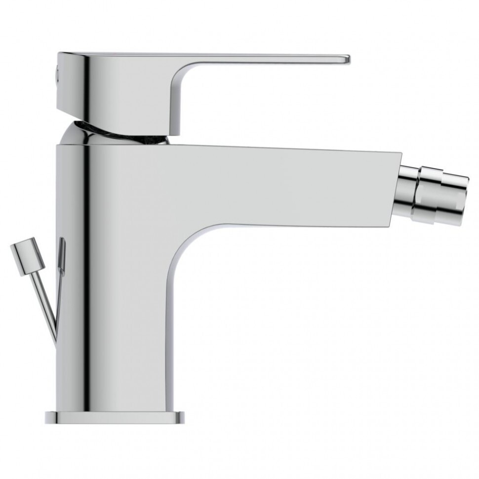 CERAFINE D Однорукоятковый смеситель для биде, картридж 28 мм FirmaFlow с функцией HWTC (ограничение максимальной температуры горячей воды), гибкая подводка G3/8", система монтажа EASY-FIX (облегченный монтаж), аэратор на шаровом шарнире (поворотный) с ограничением потока на 5 л/мин., металлическая рукоятка с индикаторами горячей / холодной воды, пластиковый донный клапан