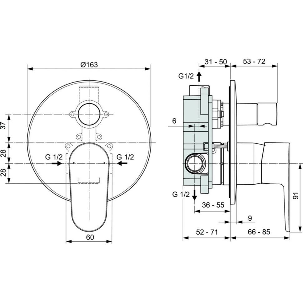 CERAFINE O Встраиваемый смеситель для ванны/душа, полный комплект (1+2)