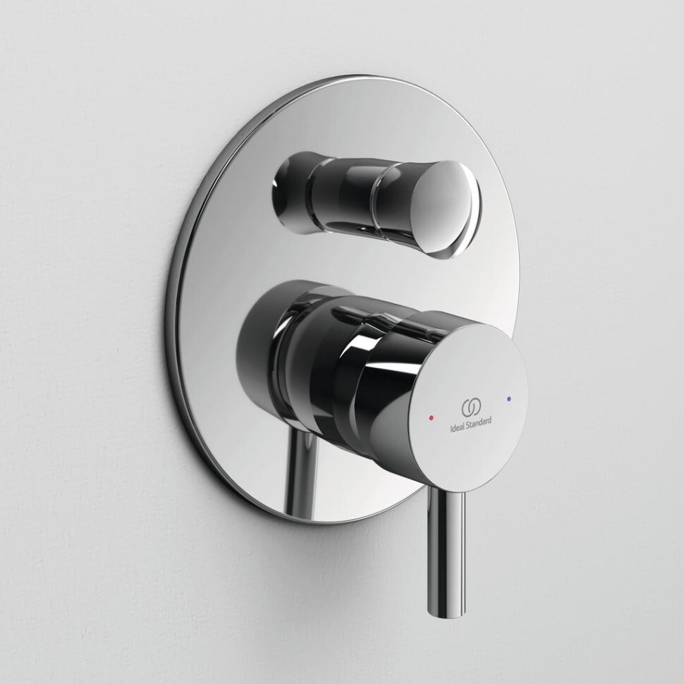 CERALINE Встраиваемый смеситель для ванны/душа, комплект №2 (функциональный комплект и накладка для настенного монтажа), картридж 47 мм функцией HWTC (ограничение максимальной температуры горячей воды), с функцией CLICK (ограничение потока воды), металлическая рукоятка с индикаторами горячей / холодной воды, для монтажа с комплектом EASY-BOX A1000NU (заказывается дополнительно), автоматическое переключение ванна/душ
