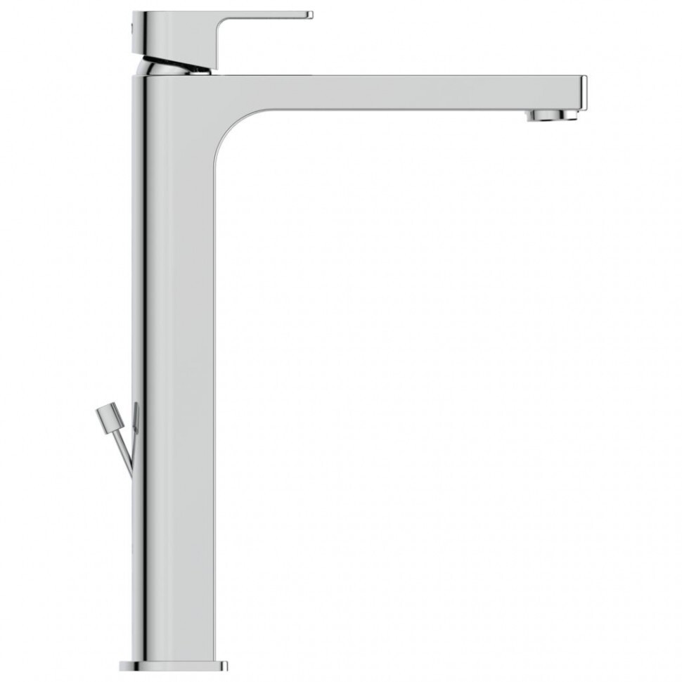 EDGE Vessel Однорукоятковый смеситель для умывальника, Технология Blue Start, керамический картридж 25 мм без функции HWTC, без функции CLICK, гибкая подводка G3/8" (антибактериальные шланги PEX), Система облегченного монтажа EASY-FIX (облегченный монтаж) аэратор Perlator с ограничением потока 5 л/мин., металлическая рукоятка с индикаторами горячей / холодной воды (индикатор холодной воды расположен по центру), металлический донный клапан