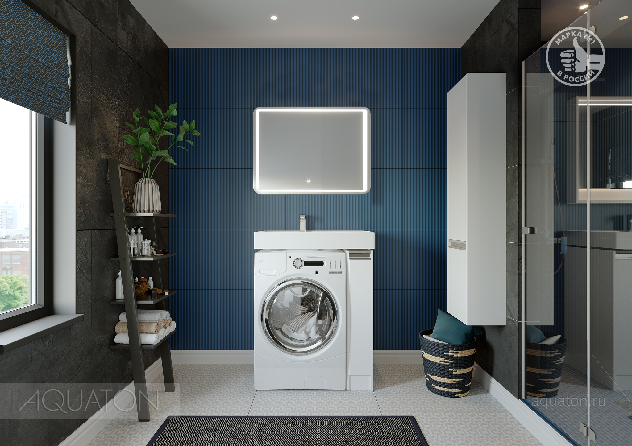 Тумба Лондри под стиральную машину выполнена из влагостойкой ламинированной плиты и окрашена в белоснежный цвет с высокой степенью глянца полиэфирной краской ультрафиолетового отверждения. Данный способ окрашивания обеспечивает изделию привлекательный внешний вид, а также износостойкость и долговечность. Ящик открывается с помощью изящной профильной хромированной ручки и состоит из двух отделений: верхнего и нижнего. Каждое отделение ящика выдерживает нагрузку до 20 кг. Над ручкой установлена вставка из влагостойкой ламинированной плиты благородного цвета дуб наварра. Тумба комплектуется раковиной Рейн 80 из прочного литого мрамора. Компактный размер данного комплекта подойдет для небольших ванных комнат и обеспечит место для хранения необходимых предметов и аксессуаров. Дополнительно к тумбе можно приобрести шкаф-колонну Лондри и зеркало c LED-подсветкой Соул 80.