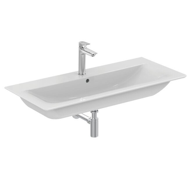 CONNECT AIR Vanity Умывальник 104 см, для монтажа соло с дизайн-сифоном или с подстольем CONNECT AIR; с отверстием под смеситель, с отверстием перелива. Без крепежа