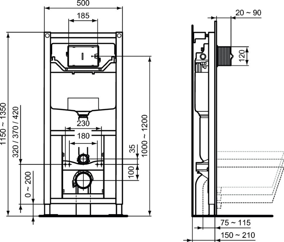 PROSYS 120 M 3H Встраиваемая инсталляция для монтажа подвесных унитазов. Возможность регулировки высоты монтажа унитаза в 3-х положениях (расстояние от крепежа унитаза до пола - 320 или 370 или 420 мм) перед завершением стены. Для монтажа перед капитальной стеной или между двумя гипсокартонными стенами. Рама тестирована нагрузкой 400 кг; устойчива к коррозии и царапинам. Легкая и быстрая установка при помощи системы EasyFix system. Сливной патрубок регулируется по глубине. Регулируемая высота от 0 до 200 мм. Минимальная толщина 125 мм. Встраиваемый бачок с фронтальным механическим управлением. Возможно пневматическое или электронное управление при помощи переходников, приобретаемых дополнительно. Двойной смыв, пред-установка 6/3 л. Три варианта объема смыва с возможностью быстрой регулировки - 4/2, 6/3 или 7/3 л. Полипропиленовый бачок, устойчивый к термальным перепадам; прокладка против конденсата в комплекте. Технология SmartValve позволяет экономить до 9 л воды в день; маркировка CE EN 14055 CL1; тихий клапан, соответствующий стандарту NF, категория Class I; толщина бачка 120 мм. Аксессуары в комплекте: крепеж для унитаза, крепежи для рамы, подсоединения входящей и сливной труб, сливной патрубок (колено) с адаптором Ø90/110 мм,резиновая прокладка для унитаза Ø45 мм, защитная коробка, запорный клапан G ½". Для монтажа с панелями смыва (заказываются дополнительно): - механическими OLEAS M1, M2, M3, M4, SOLEA M1, M2, SEPTA PRO M1, M2 - механическими OLEAS SmartFlush M1, M2 (в комбинации с комплектом SmartFlush R018667) - пневматическими OLEAS P1, P2, P3, SOLEA P1, P2, SEPTA PRO P1, P2, P3, P4, P5, SEPTA XS P1, P2 (в комбинации с пневматическим переходным комплектом R009867) - бесконтактными SYMFO, ALTES (в комбинации с электрическим блоком R015867 или с переходным комплектом SmartForce R015767) - электронными инфракрасными SEPTA PRO E1, E2 (в комбинации с переходным комплектом для ИК-панелей R009967)