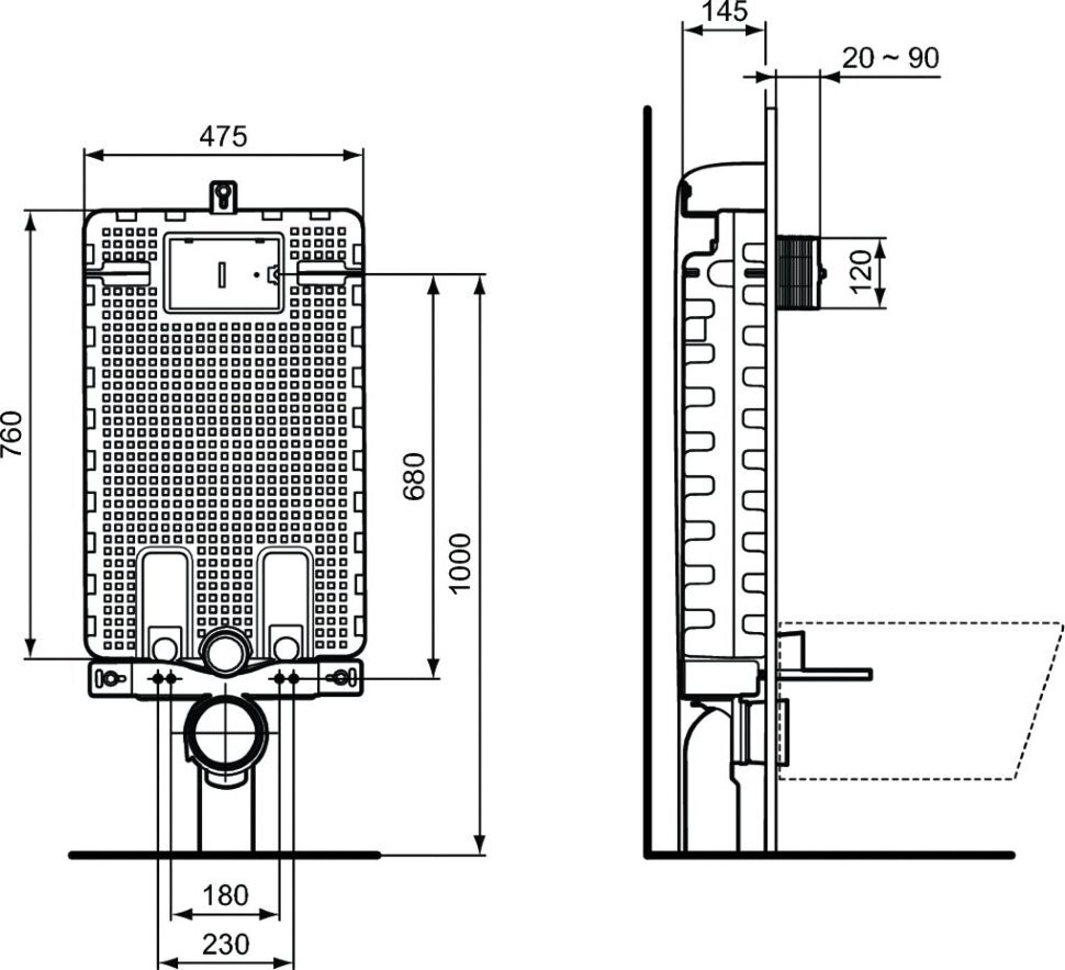 PROSYS 120 M Встраиваемый бачок для подвесных унитазов. Герметичный бачок в пенопластовой изоляции - для лучшей звукоизоляции. Для встраивания в капитальную стену. Рама тестирована нагрузкой 400 кг. Минимальная толщина 145 мм. Встраиваемый бачок с фронтальным механическим управлением. Возможно пневматическое или электронное управление при помощи переходников, приобретаемых дополнительно. Двойной смыв, пред-установка 6/3 л. Три варианта объема смыва с возможностью быстрой регулировки - 4/2, 6/3 или 7/3 л. Полипропиленовый бачок, устойчивый к термальным перепадам; прокладка против конденсата в комплекте. Технология SmartValve позволяет экономить до 9 л воды в день; маркировка CE EN 14055 CL1; тихий клапан, соответствующий стандарту NF, категория Class I; толщина бачка 120 мм. Аксессуары в комплекте: крепеж для унитаза, крепежи для рамы, подсоединения входящей и сливной труб, сливной патрубок (колено) с адаптором Ø90/110 мм, резиновая прокладка для унитаза Ø45 мм, запорный клапан G ½", сетка для облегчения адгезии раствора. Для монтажа с панелями смыва (заказываются дополнительно): - механическими OLEAS M1, M2, M3, M4, SOLEA M1, M2, SEPTA PRO M1, M2 - механическими OLEAS SmartFlush M1, M2 (в комбинации с комплектом SmartFlush R018667) - пневматическими OLEAS P1, P2, P3, SOLEA P1, P2, SEPTA PRO P1, P2, P3, P4, P5, SEPTA XS P1, P2 (в комбинации с пневматическим переходным комплектом R009867) - бесконтактными SYMFO, ALTES (в комбинации с электрическим блоком R015867 или с переходным комплектом SmartForce R015767) - электронными инфракрасными SEPTA PRO E1, E2 (в комбинации с переходным комплектом для ИК-панелей R009967)